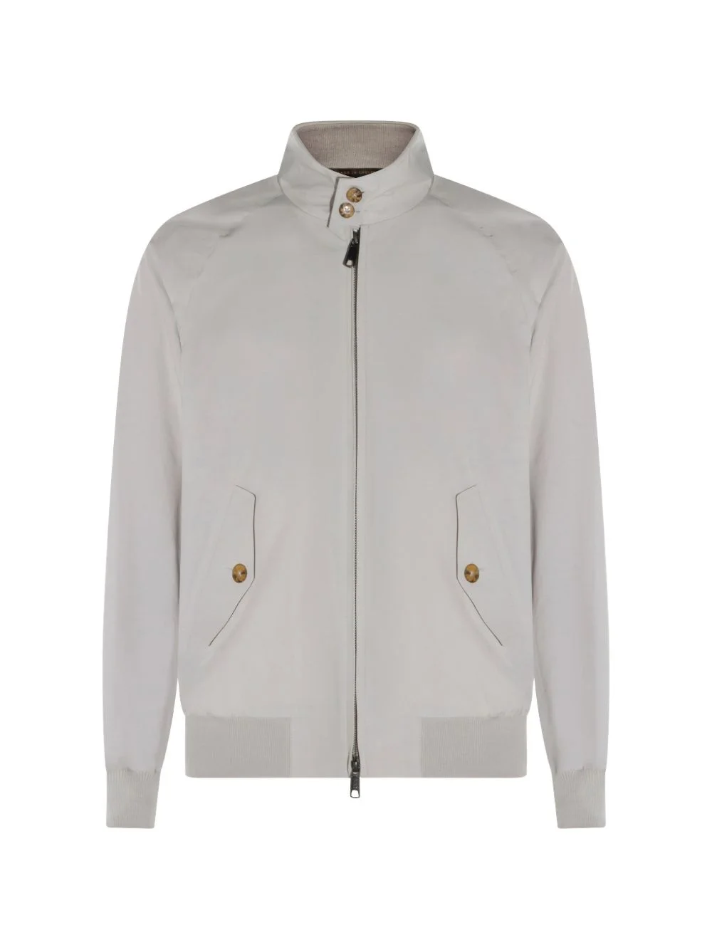 G9 Harrington high-collar jacket Highlights - Grey - Front two-way zip fastening - Buttoned pockets - Ribbed hem - Buttoned collar Made in United Kingdom Composition Outer: Polyester 58%, Cotton 42% Lining: Cotton 80%, Polyester 20% Washing instructions Read Manufacturer Guidelines