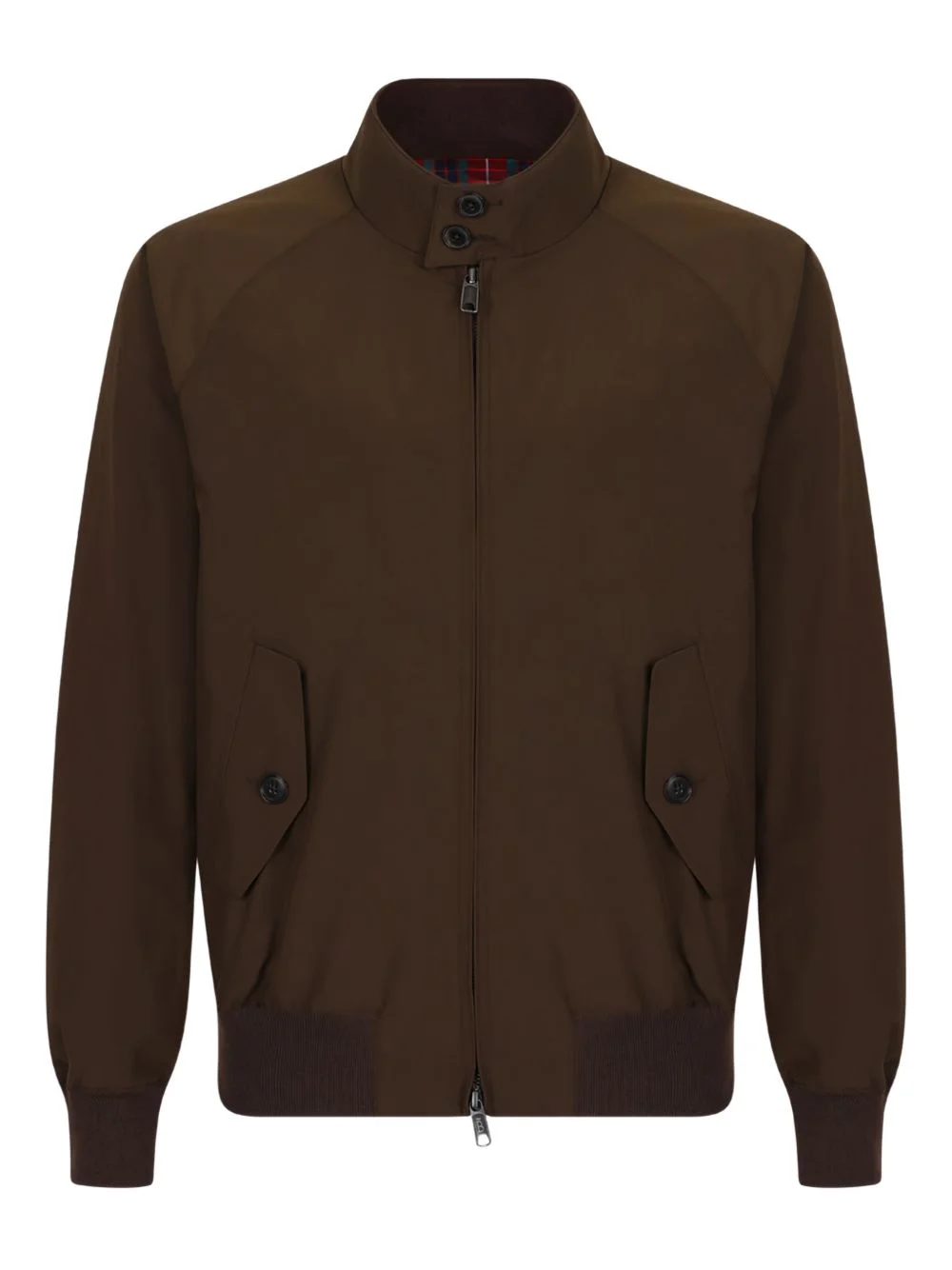 g9 harrington jacket Highlights - Brown - Zip fastening - Button closure - Ribbed hem - Ribbed cuffs - Stand-up collar Made in United Kingdom Composition Polyester 58%, Cotton 42% Washing instructions Read Manufacturer Guidelines