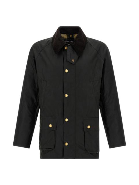 cod. MWX0339MWXOL71 Barbour's iconic 'Ashby' waxed cotton jacket with corduroy collar, double zip and clip button closure, pockets, long sleeves, logo embroidery. Color: Green Size & Fit: true to size fit Composition: 100% cotton Made in: Moldova