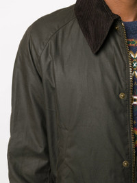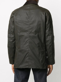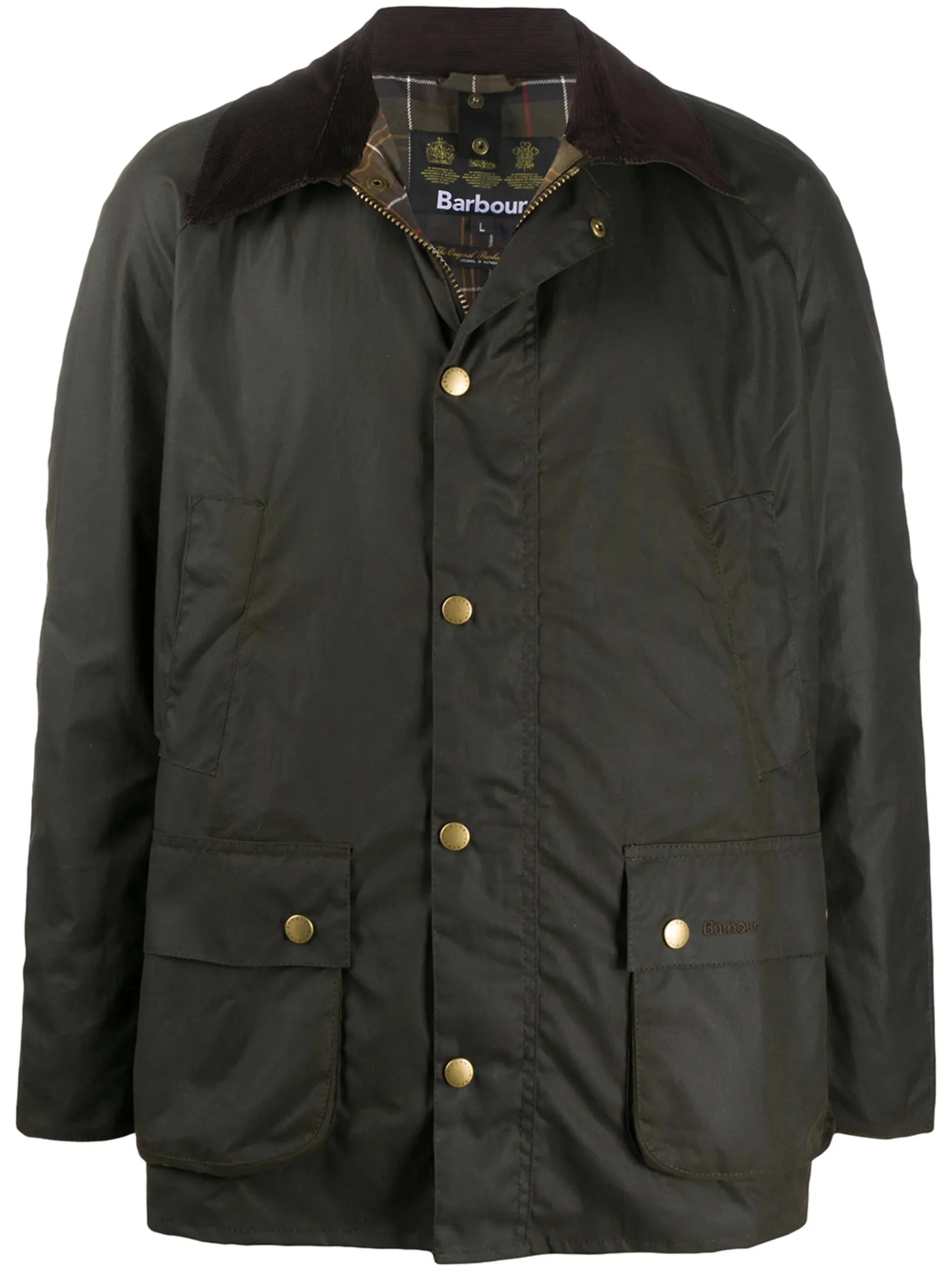 olive brown cotton wax coated front two-way zip fastening front press-stud fastening contrasting corduroy collar long sleeves two side welt pockets two front flap pockets embroidered logo to the flap pocket press stud-fastening side vents internal patch pocket full checked lining straight hem - chest: 122.0 centimetres, sleeve length: 60.0 centimetres, shoulder width: 58.0 centimetres, length: 78.0 centimetres, waist: 114.0 centimetres - Color: BROWN - Made in: United Kingdom - Designer Style ID: MWX0339 OL71 Composition and care Outer Composition Cotton: 100.0%, Lining Composition Polyester: 100.0%