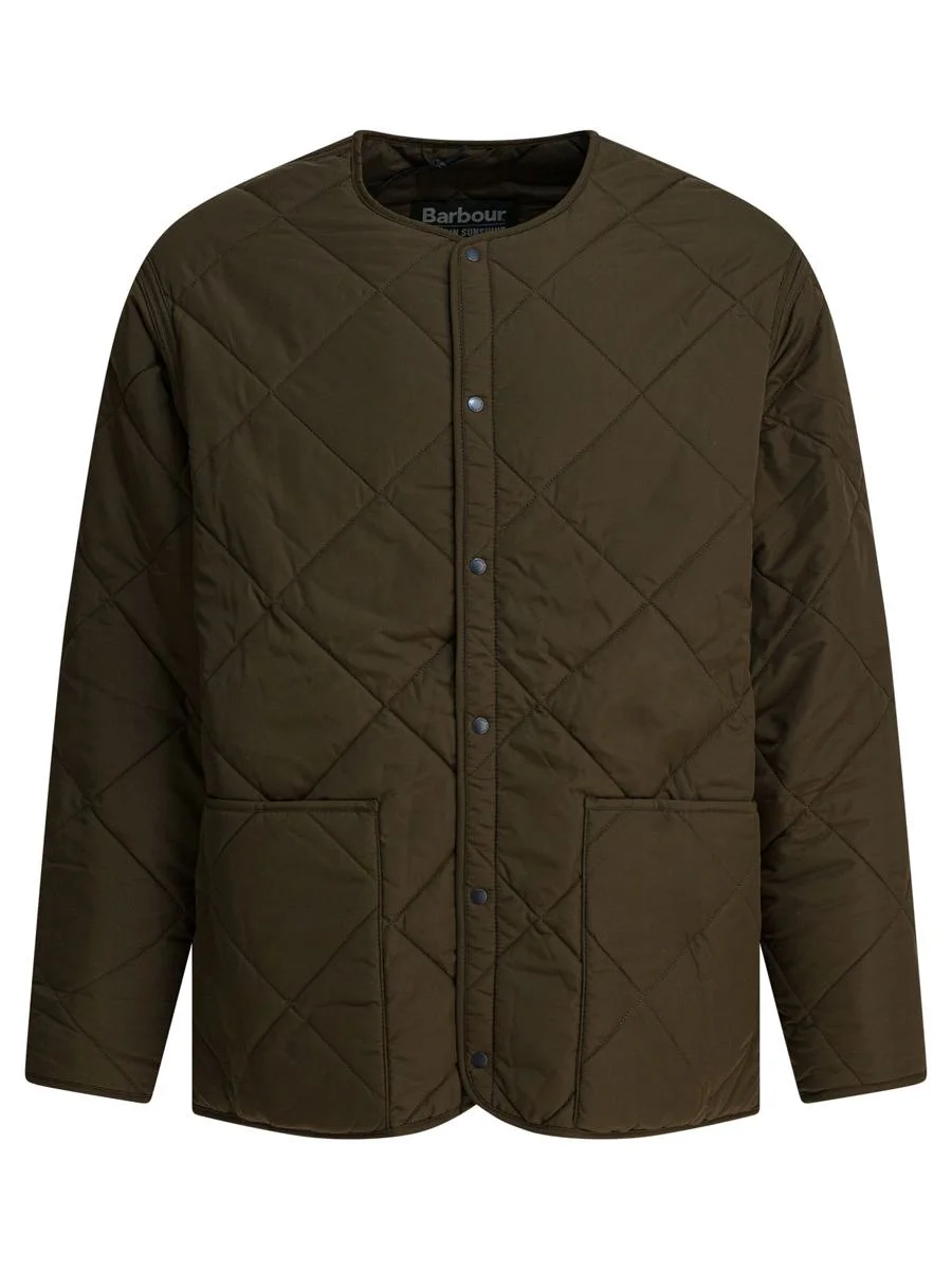 Barbour x Kaptain Sunshine quilted jacket, made with technical fabric and lightweight padding, features a compact structure and regular silhouette. Diamond quilting defines the surface, offering stability and durability. The construction includes snap buttons on the cuffs and a reinforced loop on the back of the collar, allowing it to be attached to other jackets in the same collection or worn as a stand-alone garment. || - Solid color - Diamond quilting - Lightweight padding - Snap buttons on cuffs - Reinforced loop on back of neck - Regular silhouette - Easy layering - Environmentally sustainable product - Regular fit Extra Description: Solid colourRegular fit Gender: Men Material: 100% POLYESTER Color: BROWN Made in: Imported Product ID: MLI0062MLIOL91 *Import tax/duty will be calculated at checkout (If applicable)
