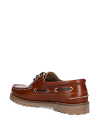 Deck boat shoes Highlights - Brown - Rubber outsole - Contrasting lacing - Metal eyelets - Moccasin stitching - Padded collar Imported Composition Lining: Polyurethane 100% Outer: Bovine Leather 80%, Cotton 20% Sole: Rubber 100%
