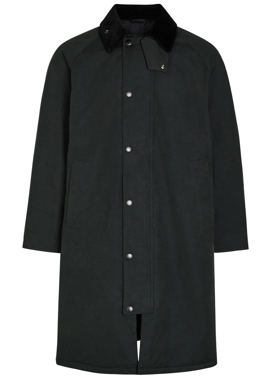 Info & Care Barbour cotton-blend jacket Padded, corduroy collar with press-stud fastening neck tab, raglan sleeves, internal checked lining at cuffs, side slip pockets, embroidered logo, press-stud fastening back vent, internal pocket, fully lined Partially concealed two-way zip and press-stud fastenings through front 45% cotton, 38% polyester, 17% polyamide; lining: 100% cotton; fill: 100% polyester Machine wash Size & Fit Length shoulder to hem: 38 inches/ 96.5cm Midweight Relaxed fit Model is 6'2"/ 188cm, chest size 38 inches and wears a size;IT48