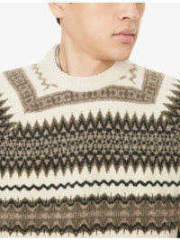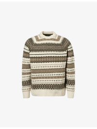 PRODUCT DETAILS - Barbour stretch-wool blend jumper - 85% wool, 13% polyamide, 2% elastane - Relaxed fit, crewneck, raglan long sleeves, all-over geometric print, all-over knitted, brushed, ribbed trims - Hand wash cold - Model is 6ft 2in/1.88m and wears a size medium - Midweight, stretchy Ref: R04492527