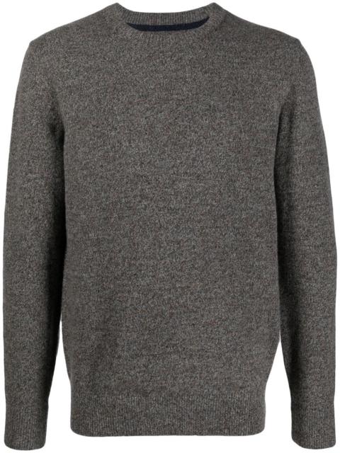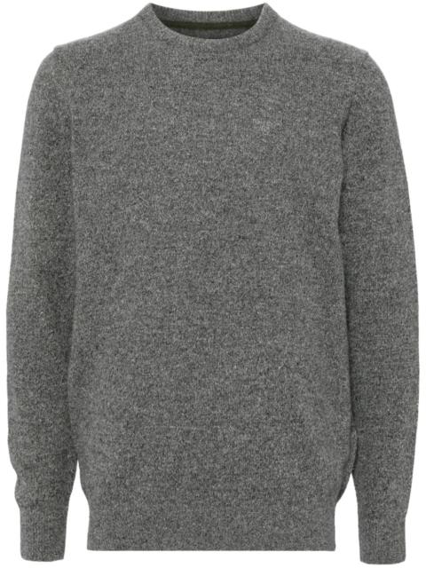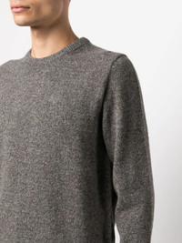 crewneck knitted jumper dark grey virgin wool-silk blend knitted construction crew neck long sleeves straight hem Made in United Kingdom Composition Wool 68%, Polyamide 23%, Silk 8%, Polyester 1% SIZE & FIT Model measurements Height 6 ft 1 in(1.85 m) Bust/Chest 35.82 in(91 cm) Hips 37.79 in(96 cm) Waist 29.13 in(74 cm) FittingInformation This piece fits true to size. We recommend you get your regular size Cut for a relaxed fit Made with a mid-weight fabric Washing instructions Hand Wash