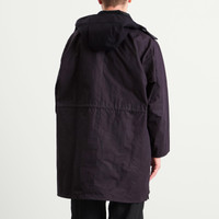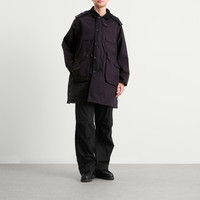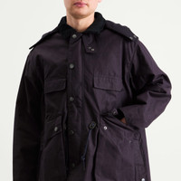 Kaptain Sunshine, the cult Japanese brand known for its elevated utilitarianism, reimagines Barbour’s iconic Bedale field coat with a contemporary twist. This oversized trench, cut from dry wax fabric, offers a crisp silhouette perfect for layering. A detachable wool hood adds seasonal versatility, while Barbour’s signature bellow pockets bring a touch of rugged charm that balances form and function with effortless style. - 100% Cotton - Detachable Hood - 2 Chest Pockets - Snap Button Closure - 2 Bellows Pockets - Drawstring Waist - Style Code: MCA1071IN91