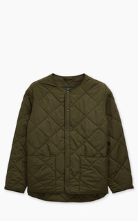 This box quilted liner jacket is military inspired. It features patch pockets, studded front fasten, underarm vents and studs forinteractivity with other jackets. - Style: Quilted Liner - Fit: Loose fit - Color: Khaki Brown - Material: 100% polyester - Barbour x Kaptain Sunshine collaboration - Military inspired - 2 patch pockets - Studded front fasten - Underarm vents and studs Model is 183cm - wears size 36/M