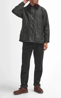 The Bedale is made of waxed cotton in 6oz quality (Sylkoil) and was first launched in 1980 on the market. Characteristic elements such as a 2-way zipper with snap closure, two large bellows pockets and two Moleskin-lined slash pockets and the cord collar give the jacket an unmistakable look. Characteristic for the Bedale Jacket are the slightly shorter cut and the rib knit cuffs in the sleeve ends. Even today, the waxed cotton jacket is manufactured at the company's own production facility in South Shields, northeastern England. The jacket can be supplemented by a warming lining and a hood. - Style: Bedale - Fit: Regular fit - Color: Archive Olive - Material: 100% 6oz waxed cotton, - Lining: 100% cotton - Rib knit cuffs in the sleeve ends - 2-way zipper - Corduroy collar - French pockets - Patch pockets - Snap buttons on the collar for buttoning a hood - Zip on the inside for zip-in lining - Made in UK Our model is 190cm, 75kg – wears size 42/L Sizing: 30-32 = XS 34-36 = S 38-40 = M 42-44 = L 46-48 = XL 50-52 = XXL