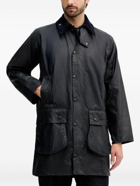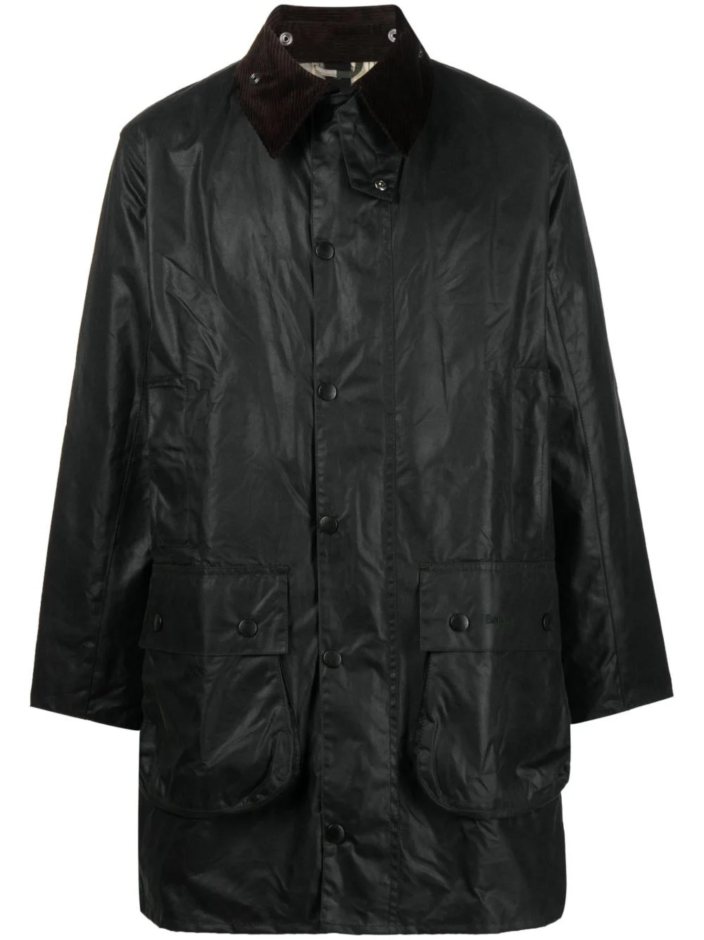Border waxed lightweight jacket black cotton classic collar front press-stud fastening two front flap pockets long sleeves straight hem Imported Composition Outer: Cotton 100% Lining: Polyester 100% Washing instructions Do Not Wash/Do Not Dry Clean