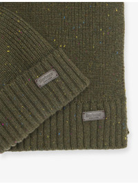 PRODUCT DETAILS - Barbour wool-blend beanie and scarf gift set - 45% acrylic, 40% wool, 15% polyamide - Scarf: rectangle shape, ribbed trims, brand patch embroidered at hem, flecked finish - Beanie: branded badge at front, rolled hem, flecked finish - Hand wash - Length 170cm, width 25cm - Presented in a gift box Ref: R04528698