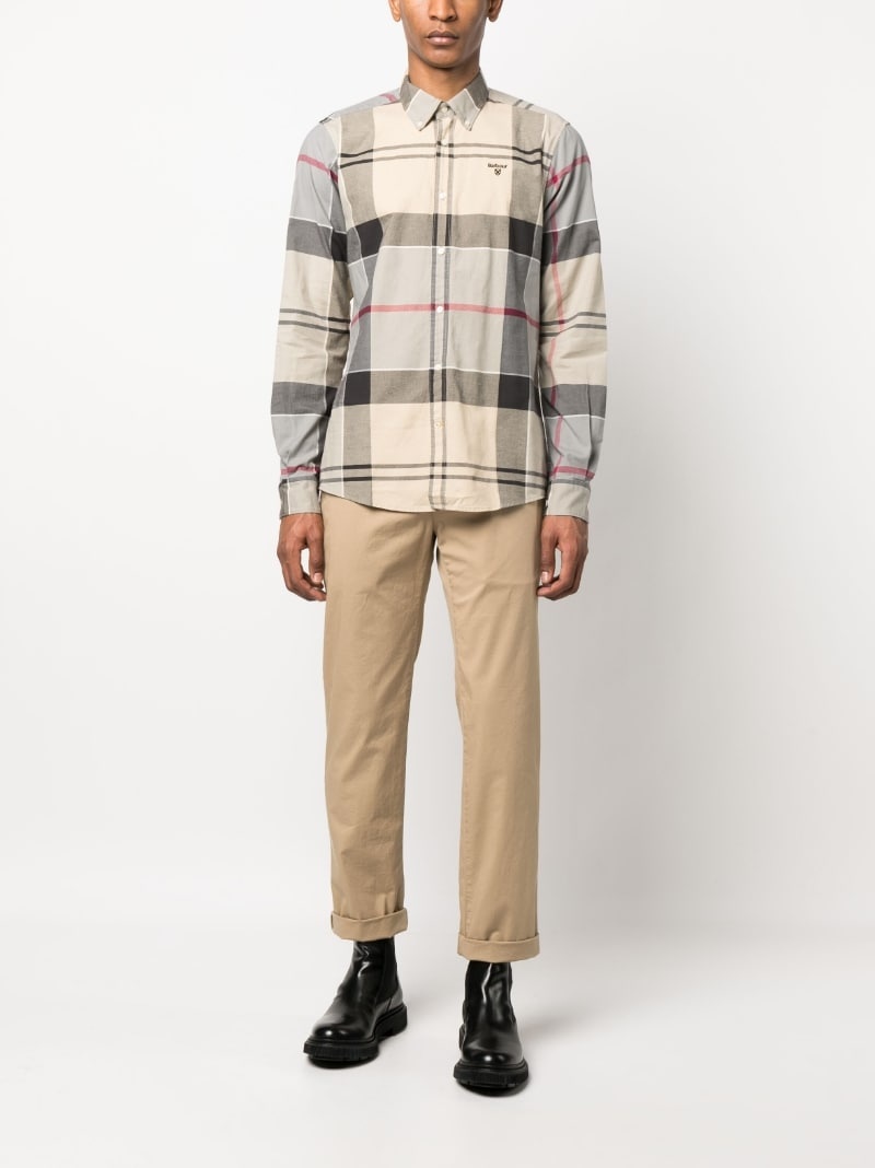 checked-pattern cotton shirt checked-pattern cotton shirt from BARBOUR featuring bold check pattern, logo print at the chest, button-down collar, buttoned cuffs, front button fastening, grey/multicolour, cotton, long sleeves and curved hem. Imported Composition Cotton 97%, Spandex/Elastane 3% SIZE & FIT Model measurements Height 6 ft 2 in(1.87 m) Bust/Chest 37 in(94 cm) Hips 33.9 in(86 cm) Waist 28 in(71 cm) FittingInformation Designed for a slim fit, offering a comfortable fit that sits just away from the body Made from a midweight stretch fabric, this piece offers elasticity and flexibility when worn This piece fits true to size – take your usual size
