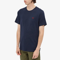 A Barbour basic that’ll add a heritage edge to your everyday outfits, this navy tee is crafted from the finest cotton jersey. Classically cut with a ribbed crewneck, it’s signed off at the chest with the British brand’s emblem in red embroidery. - 100% Cotton - Ribbed Crewneck - Embroidered Branding