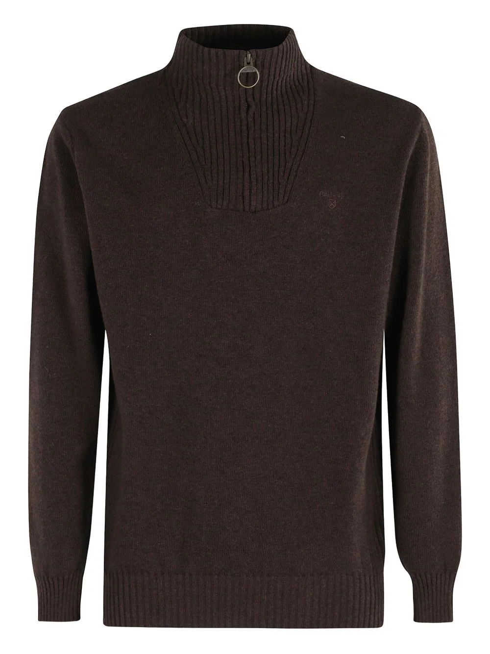 embroidered-logo sweater Highlights - Brown - Half-zip fastening - Long sleeves - Ribbed hem - Ribbed cuffs - Roll-neck - Wool Imported Composition Wool 100% Washing instructions Read Manufacturer Guidelines