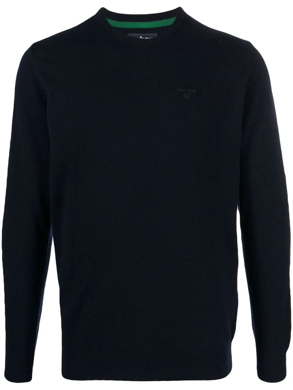 logo-embroidered wool sweater navy blue wool fine knit ribbed trim embroidered logo at the chest crew neck long sleeves straight hem Made in Italy Composition Wool 100% Washing instructions Hand Wash