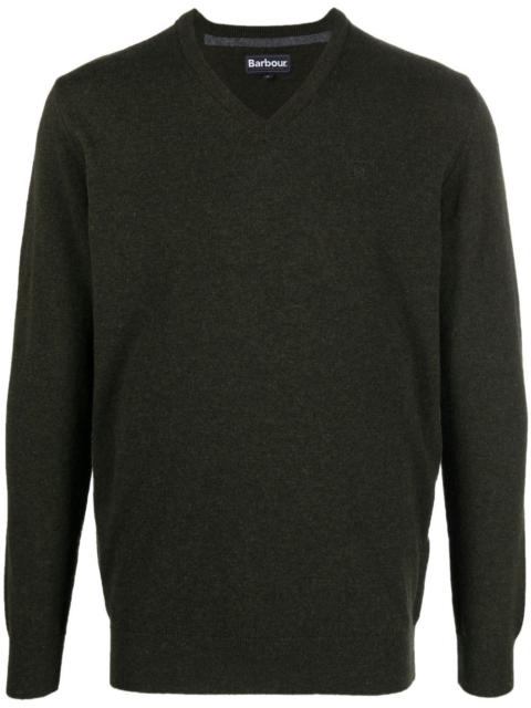 Essential V-neck wool sweater Highlights - Navy blue - Wool - Fine knit - Ribbed trim - Embroidered logo at the chest - V-neck - Long sleeves - Straight hem Imported Composition Wool 100% Washing instructions Hand Wash
