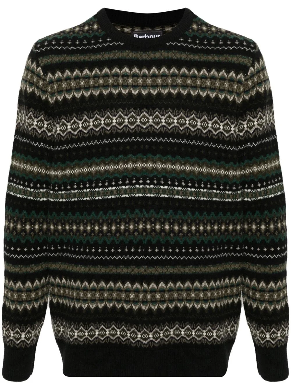 fair isle-knit sweater Highlights - Black/multicolour - Wool - Knitted construction - Fair isle intarsia knit - Crew neck - Long sleeves - Ribbed cuffs and hem - Straight hem Imported Composition Wool 100% SIZE & FIT Model measurements Height 6 ft 2 in(1.87 m) Bust/Chest 36.22 in(92 cm) Hips 35.43 in(90 cm) Waist 29.13 in(74 cm) FittingInformation Designed for a relaxed fit, this piece allows for comfort and movement when worn Made with a midweight knit, this piece offers some stretch This piece fits true to size – take your usual size
