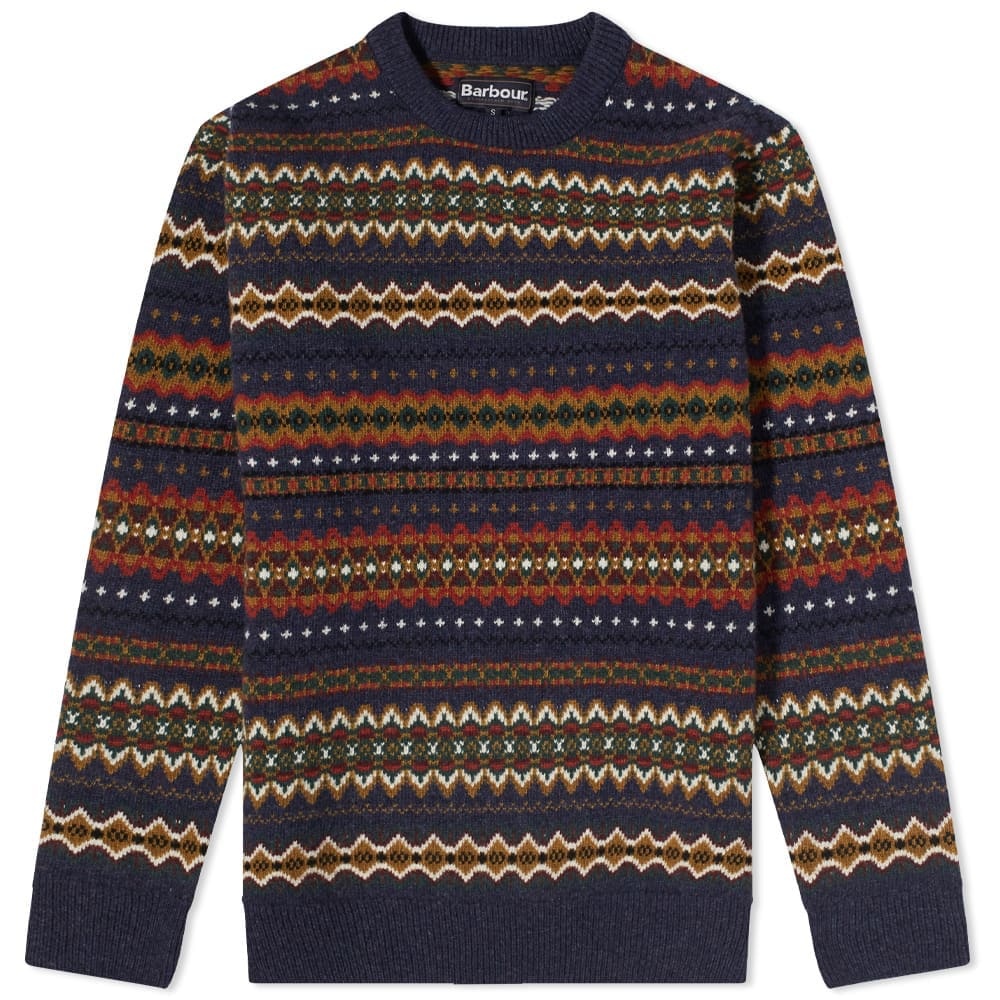 The Barbour Case Fairisle Crew Knit is a vibrant testament to Barbour's heritage, dating back to 1894. Crafted from 100% lambswool, this sweater features a colourful Fair Isle pattern and contrast ribbing. Perfect for chilly days, its tailored fit makes it suitable for both countryside strolls and city outings. - 100% Lambs Wool - Crewneck - Fair Isle Pattern - Woven Brand Tab