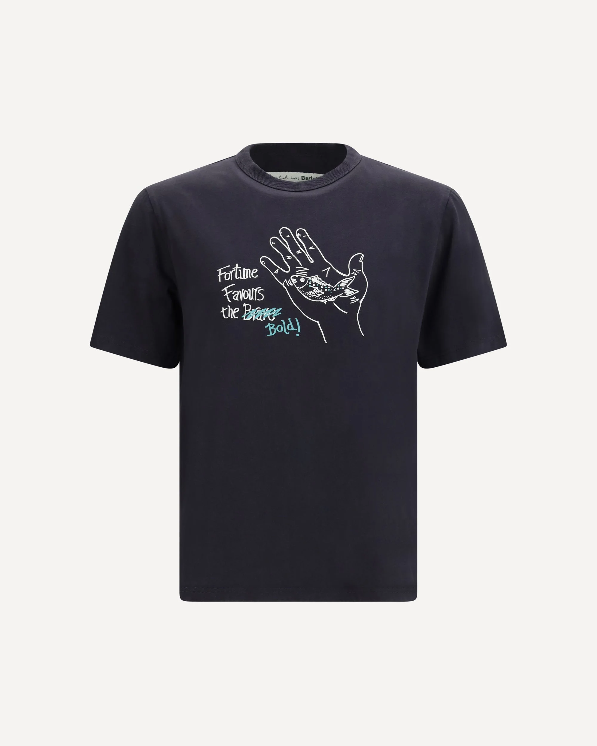 The Fortune T-Shirt by Barbour x Paul Smith with short sleeves and crew neck in cotton by Barbour blends heritage aesthetics with the creative vision of the collaboration. Crafted from cotton, it offers comfort and natural wearability, while the Fortune design reflects the distinctive meeting of Barbour and Paul Smith. The clean silhouette enhances balance and versatility, making this T-Shirt by Barbour a contemporary statement piece. DETAILS - Sku: MTS1616_NY74 - Season: SS26 - Fit: Regular - Composition: GENERAL 100% Cotton - MADE IN PORTUGAL