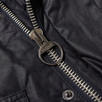 Looking to road-worthy styles for inspiration, the Duke jacket is a biker style that’s made using Barbour's iconic waxed cotton. In an inky shade of navy blue, it’s fastened with silver-tone press studs, and completed with a touch of classic corduroy at the collar. - 100% Cotton - Thornproof Waxed Fabric - Water Resistant - Quilted Lining - Corduroy Collar - Zip Closure & Storm Flap - 4 Front Pockets - Woven Brand Patch - Style Code: MWX0337NY91