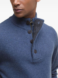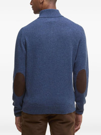 high-neck elbow-patch sweater Highlights - Blue - High neck - Button placket - Elbow patches - Long sleeves - Ribbed cuffs Imported Composition Wool 100% Washing instructions Read Manufacturer Guidelines