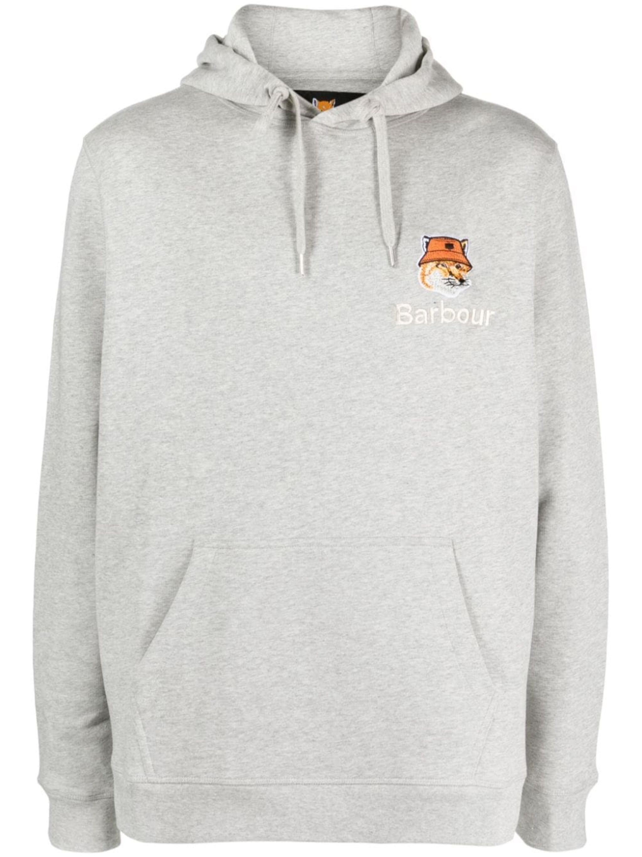 light grey cotton embroidered logo at the chest patch detail drawstring hood front pouch pocket long sleeves straight hem Size & Fit Model Measurements: Bust: 89cm Height: 184cm Hips: 95cm Waist: 71cm