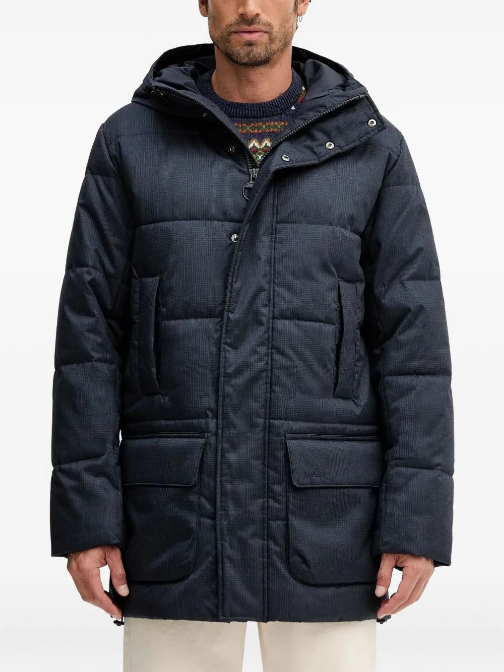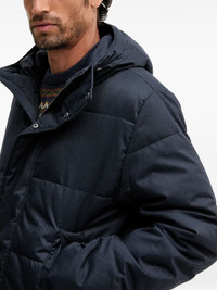 logo-embroidered padded jacket Highlights - Navy - Hooded neck - Flap pockets - Button fastening - Zip fastening - Logo embroidered Imported Composition Fabric 100% Washing instructions Read Manufacturer Guidelines