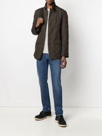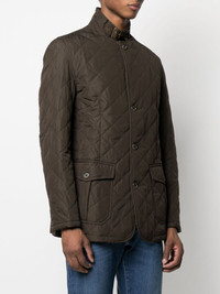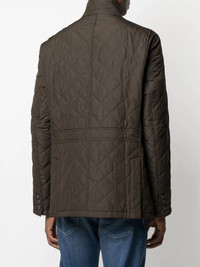 Lutz quilted jacket Highlights - Green - Diamond quilting - Notched lapels - Two side button-fastening pockets - Long sleeves - English rear vents Made in United Kingdom Composition Lining: Polyamide 100% Outer: Polyester 100% SIZE & FIT Model measurements Height 6 ft 2 in(1.89 m) Bust/Chest 35.43 in(90 cm) Hips 36.61 in(93 cm) Waist 28.74 in(73 cm) FittingInformation This piece fits true to size. We recommend you get your regular size Cut for a loose fit Made with a mid-weight non-stretch fabric Washing instructions Machine Wash