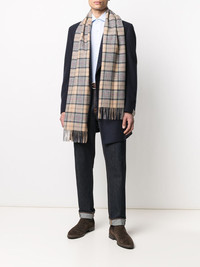 check-print fringed-edge scarf multicolour wool check print fringed edge rectangle frame Made in United Kingdom Composition Lambs Wool 100% SIZE & FIT Model measurements Height 6 ft 1 in(1.85 m) Bust/Chest 35.82 in(91 cm) Hips 37.79 in(96 cm) Waist 29.13 in(74 cm) Measurement LENGTH 78.74 in(200 cm) WIDTH 11.02 in(28 cm) Washing instructions Dry Clean Only