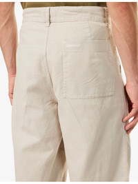 PRODUCT DETAILS - Barbour linen and cotton trousers - 55% linen, 45% cotton - Button and zip-fly fastening - Mid rise, straight leg, front patch pockets, panelled - Machine wash mild - Size UK 30: rise 12in / 30cm, inside leg 28in / 71cm, leg opening 14in / 36cm - Model is 6ft 2in/1.88m and wears a size UK 30 - Lightweight, non-stretch Ref: R04464026