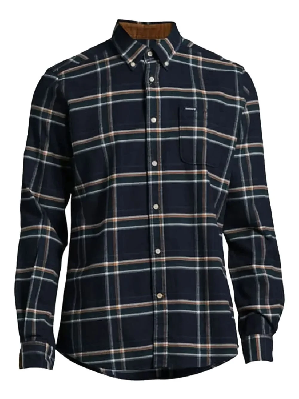 plaid long-sleeve shirt Highlights - Inky blue - Plaid pattern - Button fastening - Long sleeves - Chest pocket - Point collar Made in United Kingdom Composition Cotton 100% Washing instructions Read Manufacturer Guidelines