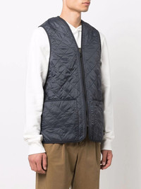 quilted pouch-pocket gilet navy blue embroidered logo piped-trim detailing V-neck sleeveless front zip fastening Made in United Kingdom Composition Outer: Polyamide 100% Lining: Polyester 100% SIZE & FIT Model measurements Height 5 ft 9 in(1.75 m) Bust/Chest 31.88 in(81 cm) Hips 33.85 in(86 cm) Waist 22.83 in(58 cm) FittingInformation Designed for a relaxed fit, this piece allows for comfort and movement when worn Made from a quilted non-stretch fabric, giving it no natural elasticity Washing instructions Machine Wash