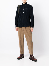 Ramsey tail button-down shirt navy blue cotton corduroy button-down collar long sleeves front button fastening Made in United Kingdom Composition Cotton 100% SIZE & FIT Model measurements Height 6 ft 2 in(1.87 m) Bust/Chest 35.43 in(90 cm) Hips 36.41 in(92.5 cm) Waist 27.55 in(70 cm) FittingInformation This piece fits true to size. We recommend you get your regular size Cut for a relaxed fit Made with a mid-weight non-stretch fabric Washing instructions Machine Wash
