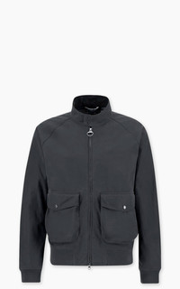 The slim-fit Barbour Modern Royston Wax Jacket is a contemporary take on the classic Harrington jacket. Made from the signature waxed cotton, it offers excellent protection against wind and rain. The design features a two-way zipper, a stand-up collar lined with soft fine corduroy, and cotton rib-knit details for a sporty look. - Style: Royston Wax Jacket - Fit: Slim fit - Color: Grey - Material: 100% cotton - Lining: 100% cotton - Made of waxed cotton - Ribbed cuffs - Ribbed hem - 2-way zipper - Corduroy collar - Side pockets - Storm flap with snap buttons Our model is 180cm, 75kg wears size M