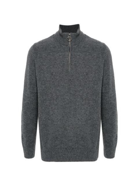 wool sweater Highlights - Medium grey - Wool - Knitted construction - Melange effect - Short front zip fastening - Ribbed panelling - Stand-up collar - Long sleeves - Elbow patches - Ribbed cuffs and hem Made in Italy Composition Wool 100% SIZE & FIT Model measurements Height 6 ft 1 in(1.86 m) Bust/Chest 36.61 in(93 cm) Hips 37 in(94 cm) Waist 28.74 in(73 cm) FittingInformation Designed for a relaxed fit, this piece allows for comfort and movement when worn The ribbed hem offers a close, comfortable fit Made with a midweight knit, this piece offers some stretch