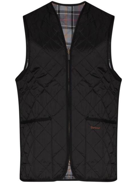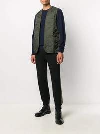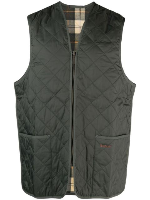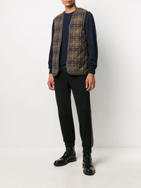 quilted reversible gilet green cotton checked lining V-neck front zip fastening sleeveless two front patch pockets Made in United Kingdom Composition Lining: Cotton 100%, Polyester 100% Outer: Polyamide 100% SIZE & FIT Model measurements Height 6 ft 1 in(1.85 m) Bust/Chest 35.82 in(91 cm) Hips 37.79 in(96 cm) Waist 29.13 in(74 cm) FittingInformation This piece fits true to size. We recommend you get your regular size Cut for a loose fit Made with a mid-weight non-stretch fabric Washing instructions Machine Wash