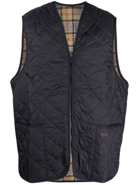 Green cotton quilted reversible gilet from BARBOUR featuring checked lining, V-neck, front zip fastening, sleeveless and two front patch pockets. Highlights - Green - Cotton - checked lining - V-neck - Front zip fastening - sleeveless - Two front patch pockets Made in United Kingdom Composition outer: Polyamide 100% lining: Polyester 100%,Cotton 100%