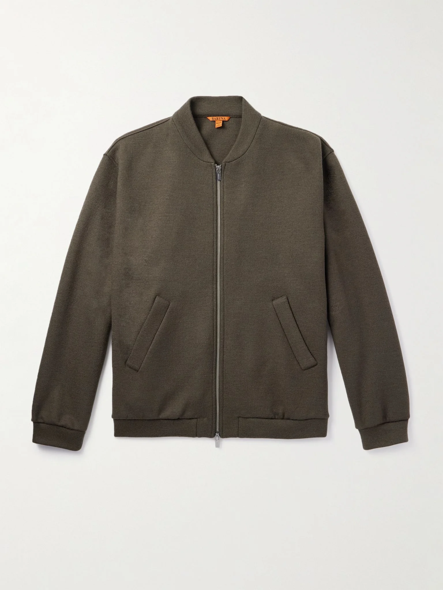 Taking cues from classic varsity styles, Barena's jacket is detailed with ribbed trims along the collar, hem and cuffs. It's been made in Italy from virgin wool-blend jersey and has a two-way zip fastening. Size & Fit - Fits true to size. Take your normal size - Designed for a relaxed fit - Ribbed hem - Mid-weight, non-stretchy fabric - Model is shown wearing an IT 48 - Model measures: chest 38"/ 96cm, height 6'2"/ 188cm Details & Care - Brown virgin wool-blend jersey - Two-way zip fastening - 98% virgin wool, 2% polyamide - Dry clean