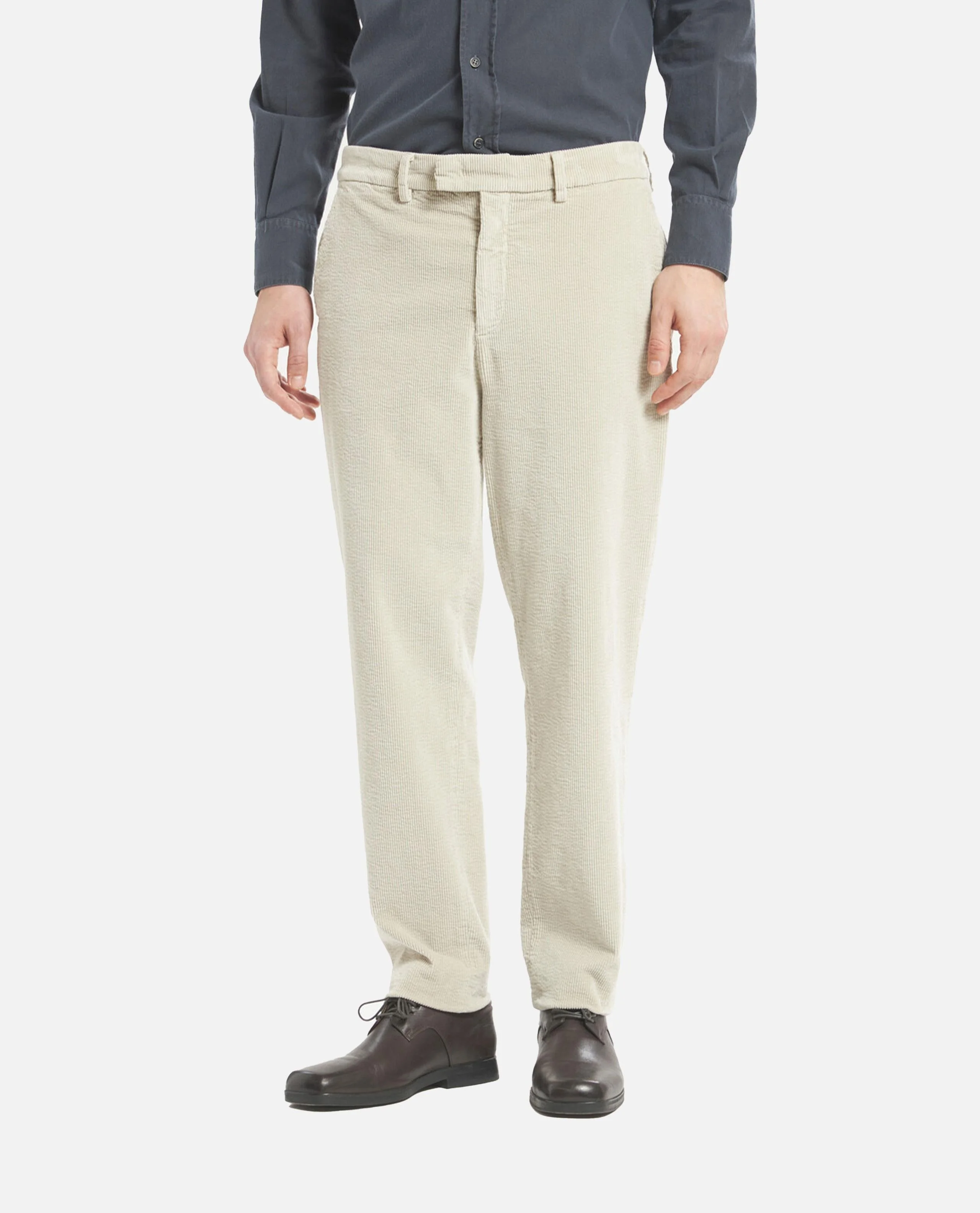 Classic ribbed trousers made in Italy, front closure with zip and buttons. Cream color Care and details Color: White Composition: 74% CO 24% RY 2% EA Made in: Italia Code: PAU52602784530