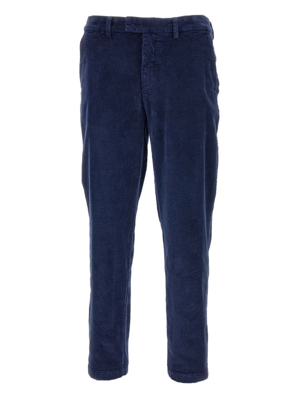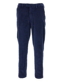 ribbed corduroy trousers Highlights - Dark blue - Corduroy texture - Zip fly - Button fastening - Front pockets - Welt pockets Made in Italy Composition Cotton 74%, Rayon 24%, Elastane 2% Washing instructions Read Manufacturer Guidelines