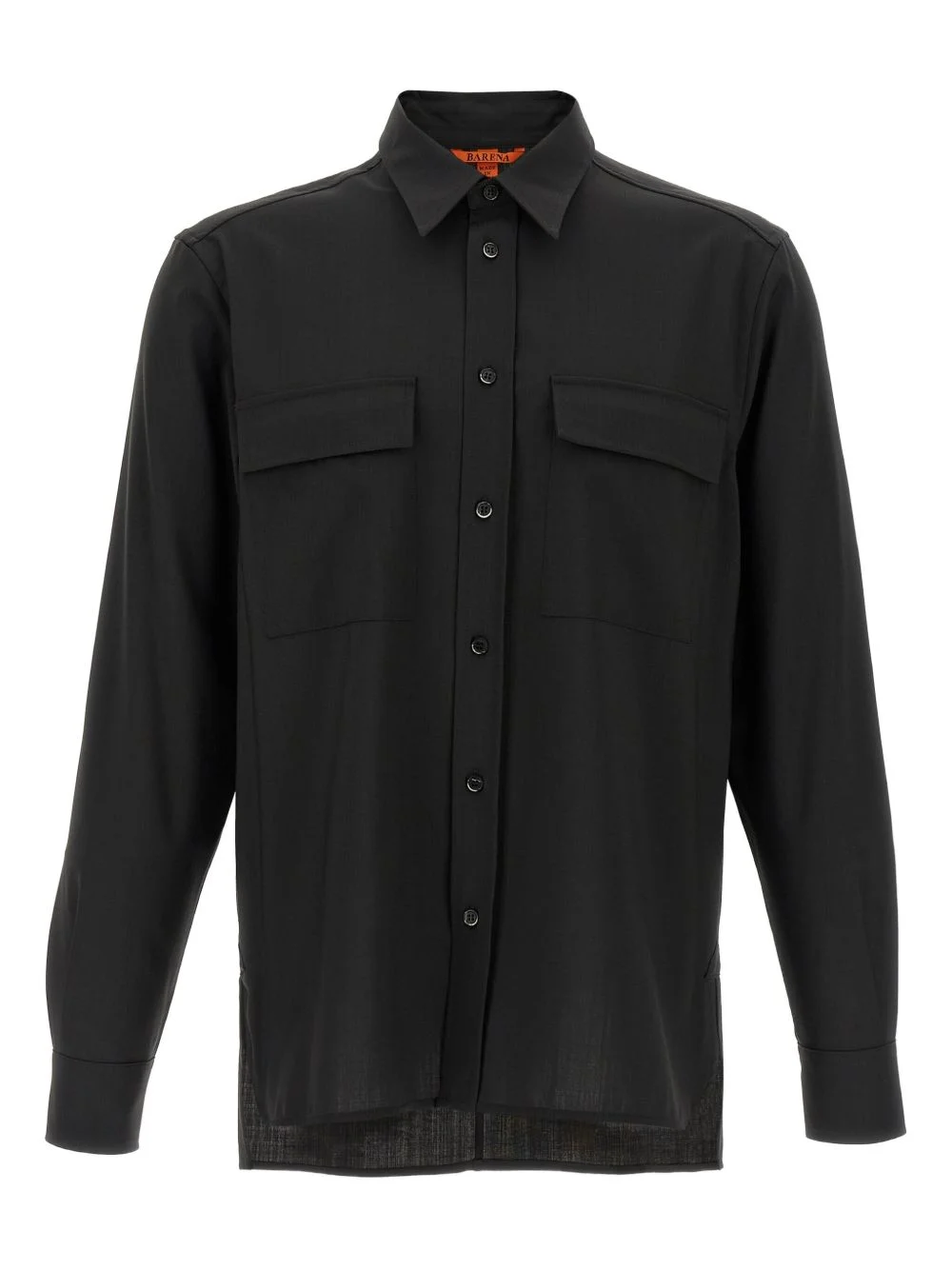 pocketed cuffed-sleeve shirt Highlights - Black - Long cuffed sleeves - Button closure - Front pockets - Side slits Made in Italy Composition Virgin Wool 100% Washing instructions Read Manufacturer Guidelines