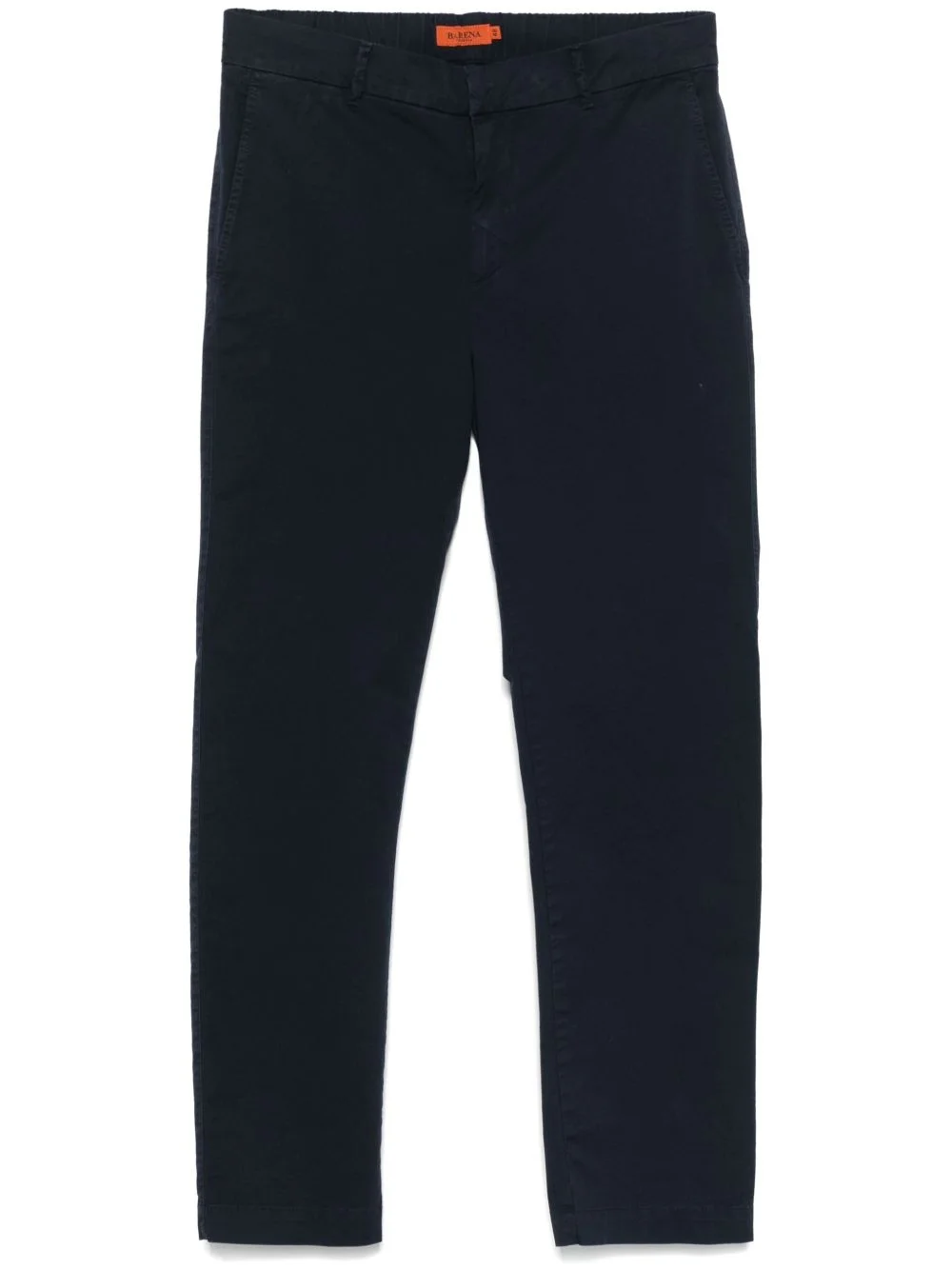 Dosana Palio trousers Highlights - Midnight blue - Concealed front button, hook and zip fastening - Two diagonal pockets to the sides - Two rear flap pockets - Rear elasticated waistband Made in Italy Composition Outer: Cotton 97%, Elastane 3% Lining: Cotton 100% SIZE & FIT Model measurements Height 6 ft 1 in(1.86 m) Bust/Chest 36.61 in(93 cm) Hips 37 in(94 cm) Waist 28.74 in(73 cm) FittingInformation Designed for a relaxed tapered leg, allowing a comfortable loose fit above the knee with a closer fit towards the calves The partially elasticated waistband offers increased movement and comfort at the waist Made from a midweight stretch fabric, this piece offers elasticity and flexibility when worn