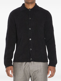 pointed-collar knitted cardigan Highlights - Black - Knitted construction - Pointed collar - Front button closure - Ribbed finishes - Alpaca wool blend Made in Italy Composition Alpaca 55%, Polyamide 27%, Wool 13%, Elastane 5% Washing instructions Read Manufacturer Guidelines