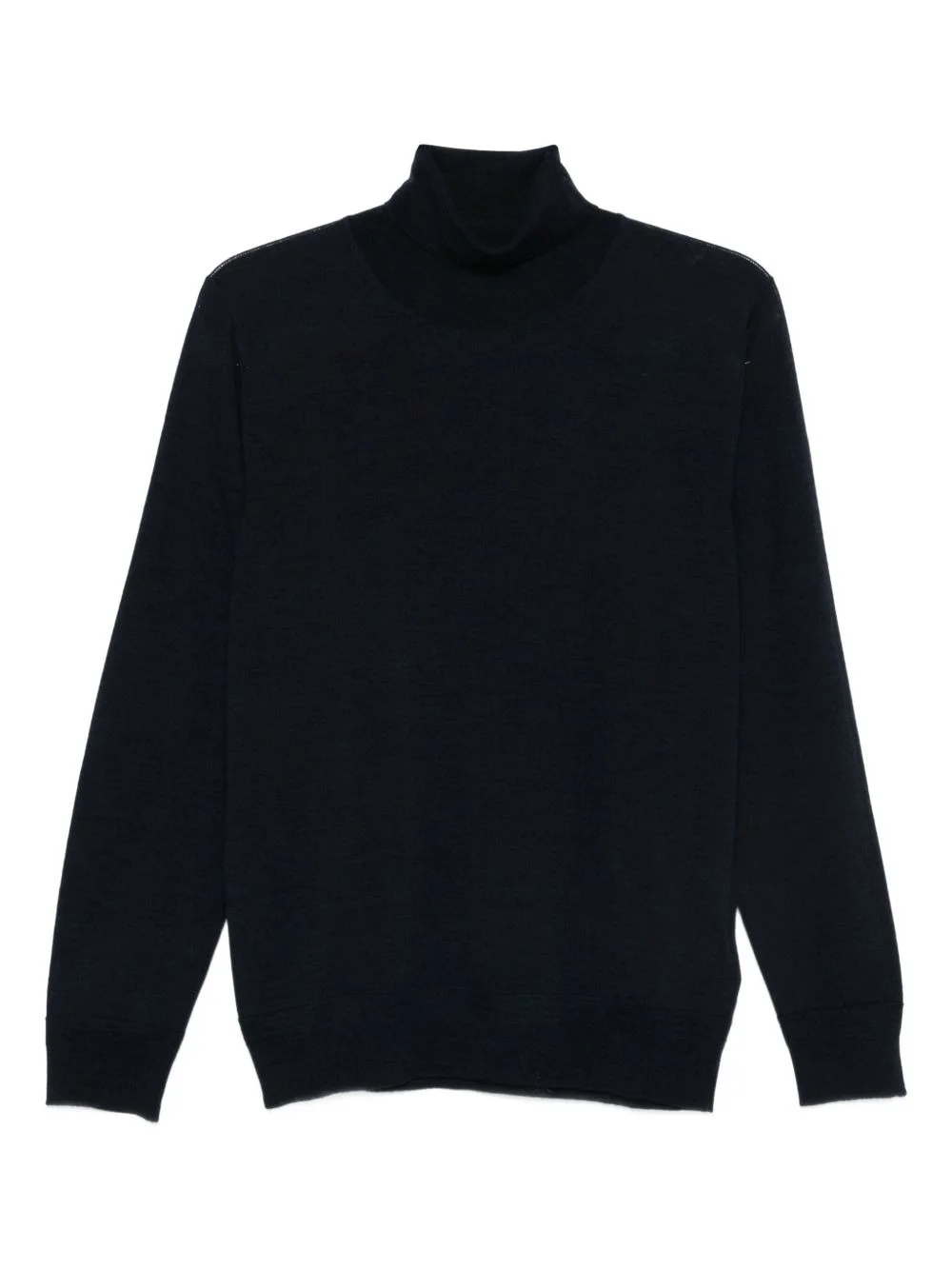 high-neck merino-wool sweater Highlights - Navy blue - High neck - Long sleeves - Straight hem Made in Italy Composition Merino 100% Washing instructions Read Manufacturer Guidelines