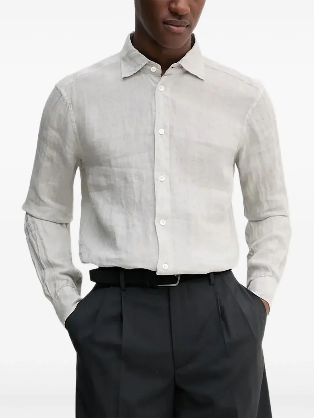 linen long-sleeve shirt Highlights - Light grey - Linen - Button fastening - Long sleeves - Buttoned cuffs Imported Composition Linen/Flax 100% Washing instructions Read Manufacturer Guidelines