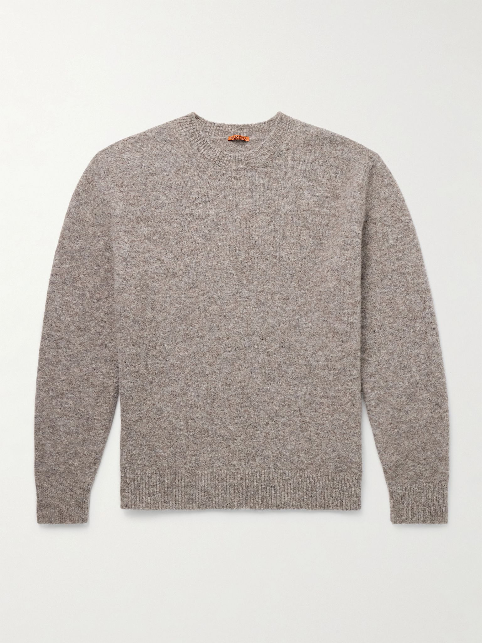 The seed for Barena was planted long before the brand's 1993 launch - years prior, founder Sandro Zara felt a spark of inspiration while visiting an old Venetian wool mill. This Italian-made sweater is knitted from a warm, brushed alpaca-blend and finished with ribbed trims. Size & Fit - Fits true to size, take your normal size - Designed for a regular fit - Lightweight knit - Model is shown wearing a M - Model measures: chest 38"/ 96cm, height 6'2"/ 188cm Details & Care - Taupe melange brushed alpaca-blend - 55% alpaca, 27% polyamide, 13% wool, 5% elastane - Dry clean