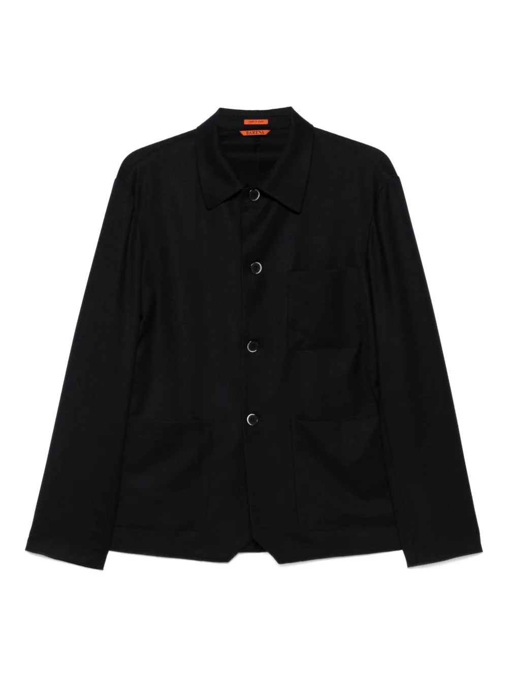 patch-pocket shirt jacket Highlights - Navy blue - Chest patch pocket - Button fastening - Spread collar - Long sleeves - Straight hem Made in Italy Composition Wool 99%, Viscose 52%, Acetate 48%, Elastane 1% SIZE & FIT Model measurements Height 6 ft 1 in(1.85 m) Bust/Chest 35.82 in(91 cm) Hips 37.79 in(96 cm) Waist 29.13 in(74 cm) Washing instructions Dry Clean Only