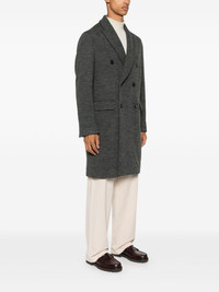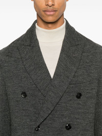 ribbed coat Highlights - Anthracite grey - Virgin wool blend - Ribbed knit - Melange effect - Double-breasted button fastening - Peak lapels - Chest welt pocket - Two front flap pockets - Long sleeves with buttoned cuffs - Central rear vent - Internal pocket - Full lining - Straight hem - Mid-length Made in Italy Composition Outer: Virgin Wool 98%, Polyamide 2% Lining: Cotton 100%, Viscose 52%, Acetate 48% SIZE & FIT Model measurements Height 6 ft 2 in(1.87 m) Bust/Chest 38.18 in(97 cm) Hips 36.61 in(93 cm) Waist 29.13 in(74 cm) FittingInformation Designed to be unstructured, offering a loose fit throughout The vented hem offers movement at the rear Made from a midweight fabric