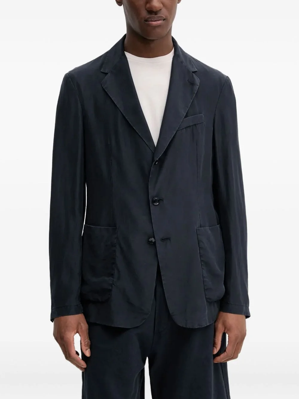 single-breasted silk blazer Highlights - Dark blue - Front button fastening - Front patch pockets - Notched lapels - Relaxed fit Imported Composition Silk 100% Washing instructions Read Manufacturer Guidelines