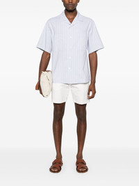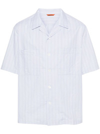 striped cotton shirt Highlights - Light blue/multicolour - Cotton - Vertical stripe pattern - Cuban collar - Short sleeves - Two chest patch pockets - Straight hem - Front button fastening Made in Italy Composition Cotton 100% SIZE & FIT Model measurements Height 6 ft 2 in(1.88 m) Bust/Chest 36.61 in(93 cm) Hips 35.82 in(91 cm) Waist 27.95 in(71 cm) FittingInformation Designed for a relaxed fit, this piece allows for comfort and movement when worn Made from a midweight non-stretch fabric This piece fits true to size – take your usual size Washing instructions Machine Wash