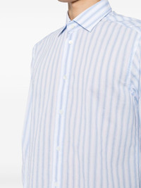 striped poplin shirt Highlights - White - Blue - Cotton blend - Poplin texture - Vertical stripe pattern - Classic collar - Front button fastening - Long sleeves - Buttoned cuffs - Curved hem Made in Italy Composition Cotton 84%, Polyamide 16% SIZE & FIT Model measurements Height 6 ft 2 in(1.87 m) Bust/Chest 34.25 in(87 cm) Hips 36.22 in(92 cm) Waist 29.52 in(75 cm) FittingInformation Designed to be unstructured, offering a loose fit throughout Made from a midweight non-stretch fabric This piece fits true to size – take your usual size